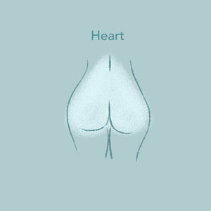Heart shaped butts are similar to round butts, but are like an upside down heart with more volume in the butt at the lower part of the hip. Usually have a taper near your top hip and a narrower waist.